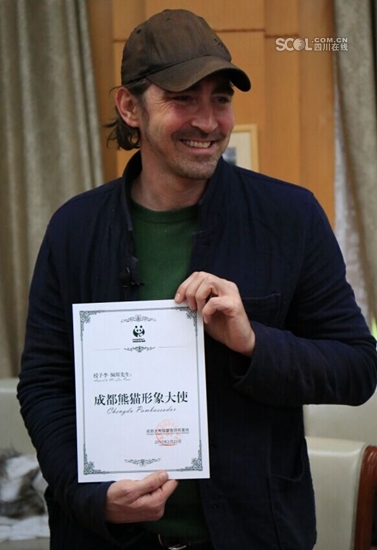 四川在线消息(记者 刘星/文 郝飞/图)2月21日,曾出演《霍比特人》中的精灵王一角的演员李•佩斯来蓉体验熊猫保育活动,并被授予成都熊猫形象大使称号。