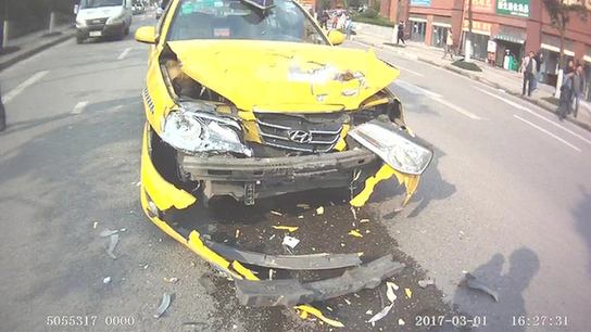 1日下午4时许,复兴镇思源路路口发生一起小轿车与摩托车擦挂的事故。事故本身责任明显,损失并不大。可是小轿车司机唐某正准备下车,就听到了“嘭”的一声响。自己的车子又被追尾了。原来,在唐某和摩托车的事故发生后,一辆出租车从吉水街左转过来,驾驶员姓刘,刘某在左转弯时方向有点急,转过来后发现了停在路中间的摩托车,忙绕过去,哪知绕过了摩托车却一头撞在了唐某的车子尾部。刘某说自己在转弯时没发现前方的事故,刚转过来就撞上去了。刘某车子前方受损严重,被追尾的唐某车子尾部受损,车牌也被撞乱。此次追尾事故刘某因为操作不当负事故全责。
