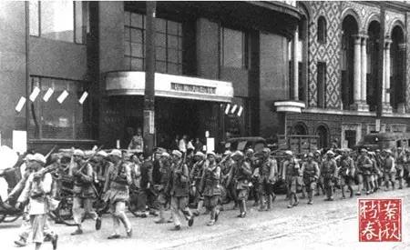 1949年解放军进入上海,行进在国际饭店门前
