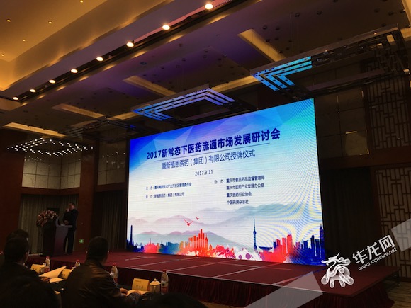 “2017新常态下医药流通市场发展研讨会”今(11)日召开。记者 佘振芳 摄华龙网3月11日21时25分讯(记者 佘振芳)2017年全国两会正在召开,供给侧结构性改革当仁不让地成为最受关注的“关键词”,在医药领域同样如此。今(11)日,“2017新常态下医药流通市场发展研讨会”在重庆召开,医药行业大咖齐聚一堂,共同探讨医药流通行业发展。