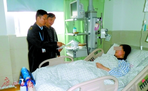 阿玲在医院配合卫生部门执法人员调查