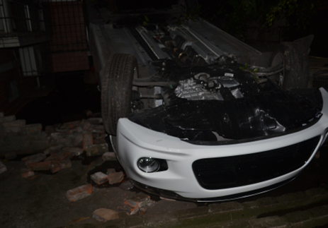 2017年2月24日21时10分左右,杨家坪大队接到群众报警称黄桷坪电厂光明宾馆往电力中专学校50米左侧一支路内,一辆白色新车坠落到路边花台下,并有人员受伤。民警迅速赶到现场,发现一辆没有号牌的白色起亚牌轿车“四脚朝天”地躺在路边6至7米高的坎坡下,车顶已经严重变形,发动机还在不断漏油,受伤人员已由120救护车送至医院救治。