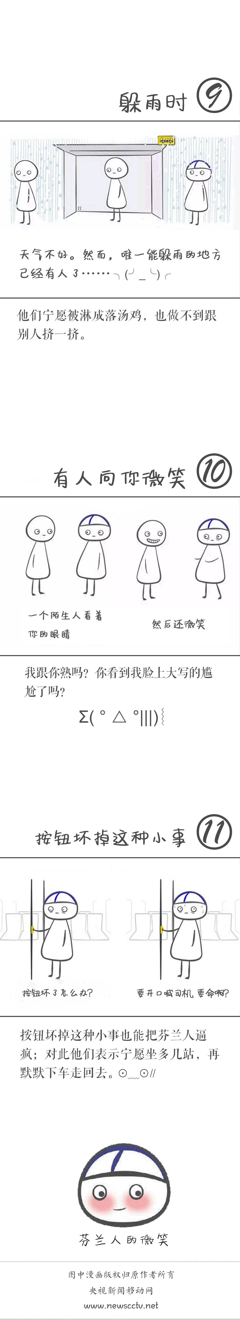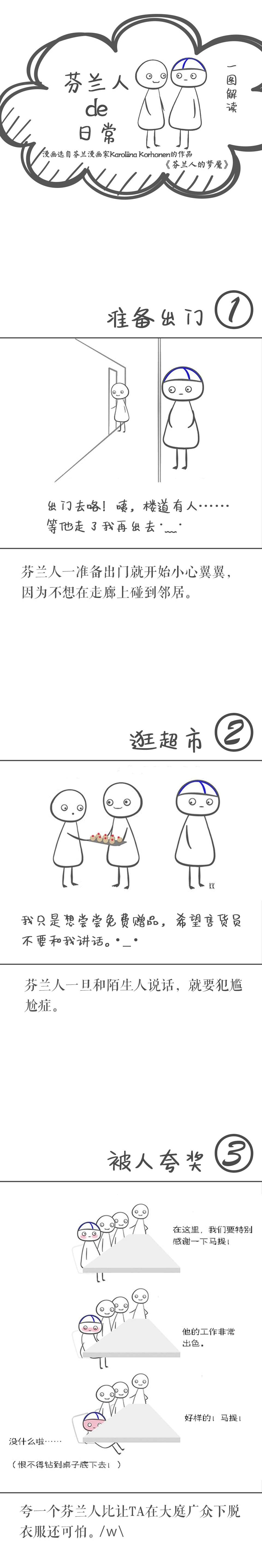 当然,这些漫画是用戏谑的方式,夸张地概括了一个极其害羞内向的芬兰人。实际上,并不是所有的芬兰人都是这么脸谱化的。你也很有可能遇到一个十分热情开朗的芬兰人!