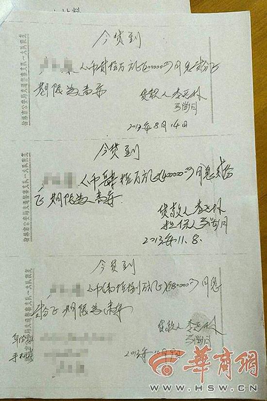债权人出示的借贷凭据显示,被欠款最多的卢某借出78万元,被欠款最少的李某借出10万元,借贷金额总计达到470万元。借贷条上,贷款人签名为李延林,担保人为马尚月。债主卢某称,当年他是把房子抵押出去借钱给李延林,现在每月还要还5000多元借款。债主们坦言,当年李延林夫妇集资投资房地产、酒店、煤矿,借钱出去都是想吃点利息,但没想到现在连本金都拿不回来。