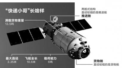 贾东永(天舟一号货运飞船机械总体主任设计师):天舟系列飞船能够运送物资的最大重量超过6吨。如果从货物尺寸上来说,这次发射中采用的全封闭飞船,单件货物最大尺寸就会受到交会对接通道的限制。如果将来采用全开放飞船,运输二三十米长的大型舱外货物是没有任何难度的,再加上有些货物运输时可以折叠,最大尺寸到底能有多大,就看工程技术人员的想象力了。