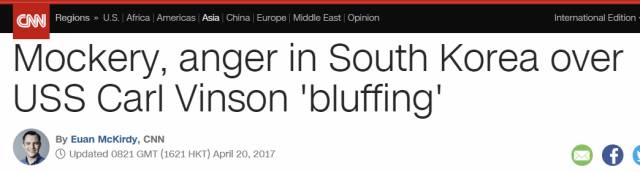 一家韩国媒体就直接打出了“特朗普的航母谎言”的大标题,并讽刺说“当朝鲜人用假导弹忽悠世界,制造声势时,美国人也玩儿起了这个套路…”