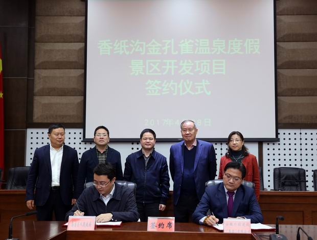 4月28日,香纸沟温泉度假景区开发项目签约仪式举行。市委副书记、市长刘文新,安徽外经建设(集团)有限公司董事长蒋庆德出席并讲话,共同见证签约。