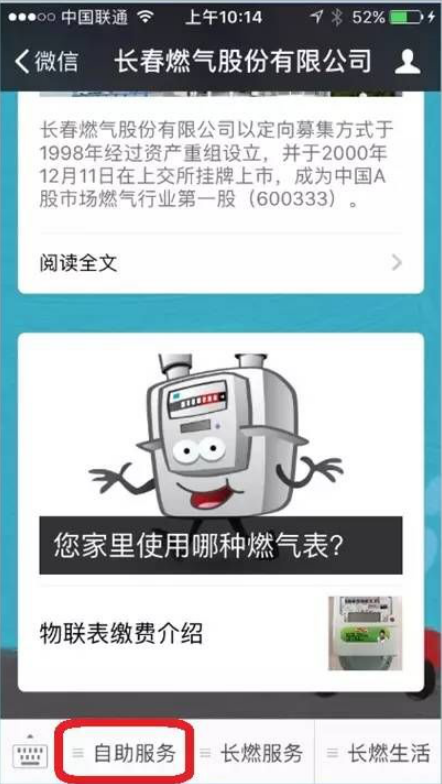 2、进入长春燃气界面,点击“自助服务”。