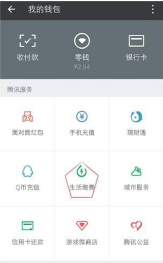 3、在微信钱包里找到生活缴费