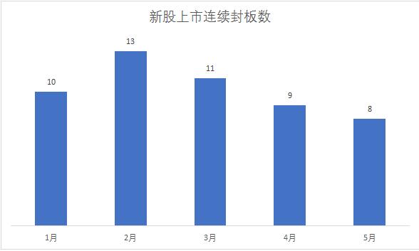 经历了2月和3月的回暖后,5月以来,新股上市平均封板天数继续下滑。