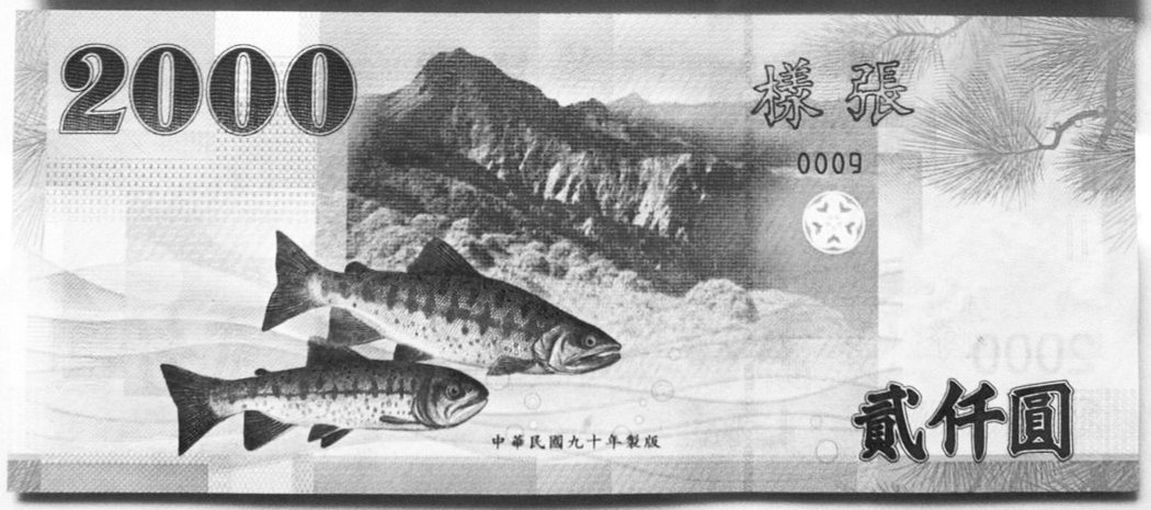 新台币2000元纸钞背面是樱花钩吻鲑。