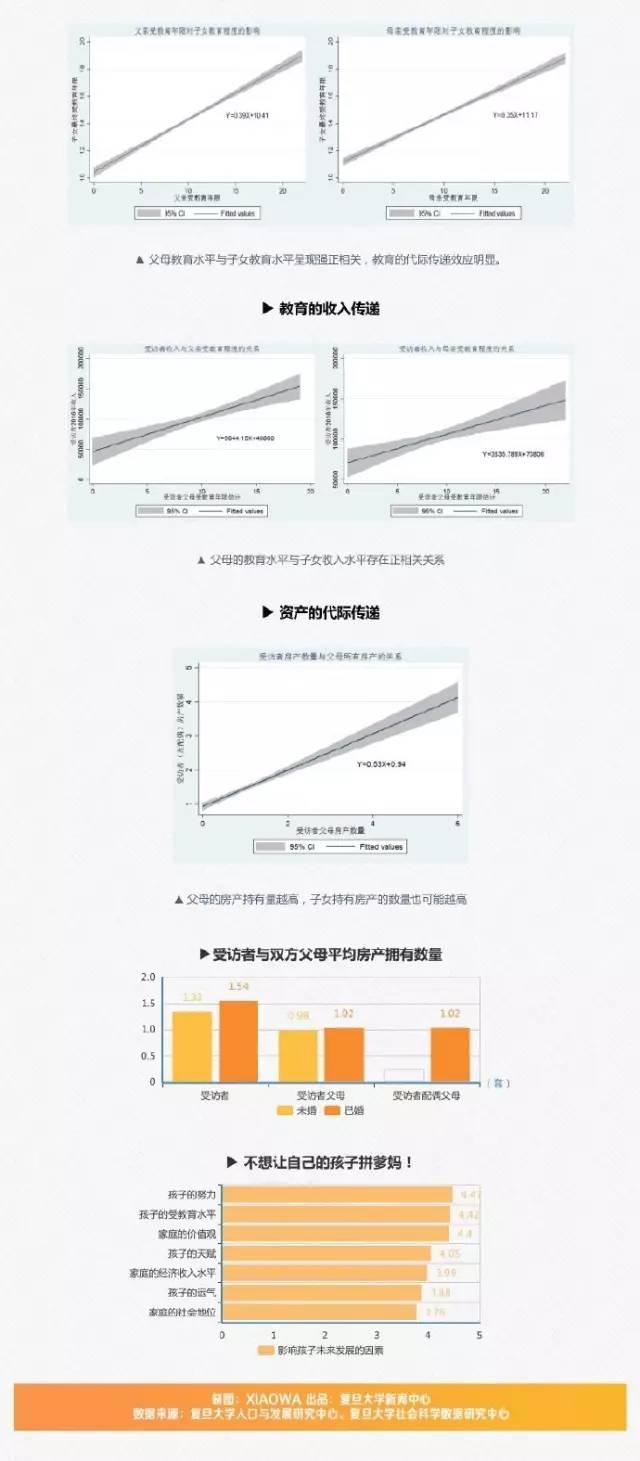 “80后”的受教育水平及收入水平与其父母的受教育水平呈正相关关系,“80后”的房产持有量也与其父母的持有量具有相关性,呈现一定的代际传递效应,并尤以教育的代际传递最为明显。