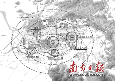 惠州潼湖生态智慧区总体结构图。从惠州市区江北驱车约20公里,便来到潼湖生态智慧区。走进已初步建成的创新园,教育部中国高校(华南)科技成果转化中心、中国信息通信研究院华南创新中心等一批“国字头”“省字号”研发机构已入驻。即将在惠州举行的首届中国高校科技成果交易会上,这个瞄准打造“广东硅谷”的区域将吸引全国高校的目光。