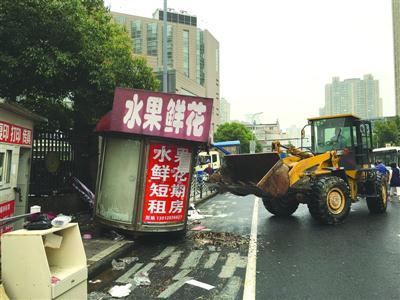 随着机器轰鸣,东安路上的一处蘑菇亭被成功拆除。因靠近医院,这里的经营者也是不断扩大经营范围,对人行道的占用是越来越多,一直都是附近居民的投诉大户。“仅仅今年就被投诉过34次。”