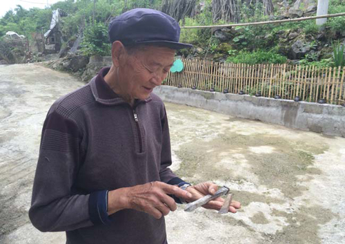 6月10日,笔者见到彭水县石盘乡石兴村的村民殷光明,今年68岁,他是有着50多年经历的传统手工石匠,12岁开始学习这门传统手艺。殷光明回忆道,在上世纪五六十年代,石匠这个职业是很受欢迎,那时没有像现在这么多的电器,玉米、谷物都是需要用石磨、石碓这些石具进行加工,这就促使了村里很多人去学这门手艺。殷光明说,他的手艺都是自学来的,当其他石匠在雕刻石头时,他就在旁边仔细看,然后自己回去琢磨。经过两年的摸索,他可以单独接活了,也逐渐地喜欢上了这份职业。