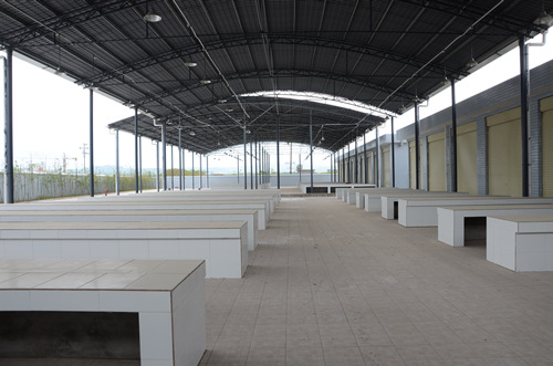 该菜市场项目位于重庆市梁平区工业园区梁平职校旁,于2016年10月开工建设,今年4月底菜市场主体建筑基本完工,市场内道路已全部硬化,商铺、摊位也装修完成。据介绍,整个项目占地面积2400余平方米,设置管理房1间,商铺25间,摊位141座,水禽加工区1处,家禽加工区1处,零担区1处。