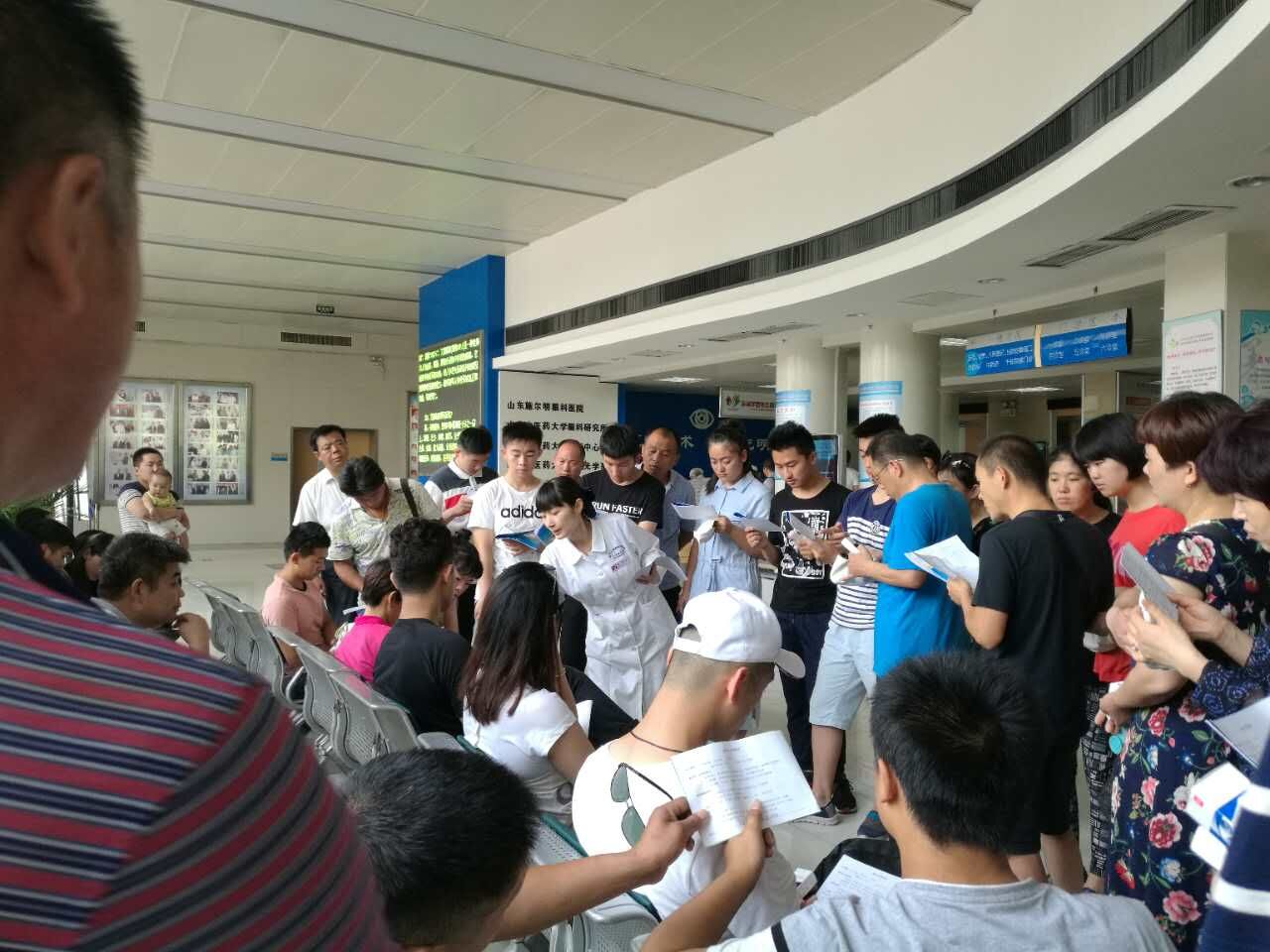 记者来到山东中医药大学附属(施尔明)眼科医院准分子激光治疗中心(屈光外科),四十多位近视眼患者以及家属在外边等待着手术治疗。小刘今年18岁家住历下区,从上初二开始已经戴了5年眼镜,现在近视度数在400度左右。今年高中毕业后想报考军校,“军校体检要求首先不能近视眼,所以想用激光打了。”小刘说。