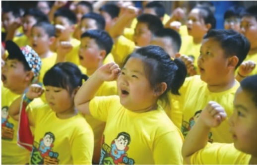 7月12日,“小胖墩“在教官的带领下宣誓准备集体瘦身。 记者 郭立亮 通讯员 姚家琦 摄