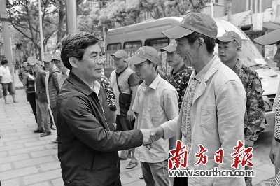 6月12日,广东省第五扶贫协作工作组组长,云南省昭通市市委常委、副市长邓浩全为首批28名彝良劳动力赴草湖工业园务工送行。郭佳摄