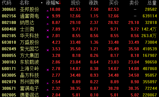 近日,芯片概念股持续活跃。21日早盘,板块个股集体上扬,截至目前,圣邦股份、通富微电涨停,士兰微涨近8%,该股此前三个交易日已累计上涨30%。纳斯达、华天科技涨幅均超7%。
