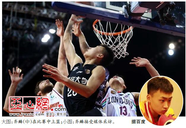 亚心网讯 (记者黄兴)上周末的全明星赛,代表清华大学参加了与CBA南北区星锐队对抗赛的大一新生齐麟险些完成一次隔着两人的暴扣。在13分钟出场时间里得到9分,齐麟一战成名,与成名基本同时出现的还有一条消息:新疆广汇篮球俱乐部已经签下了他。