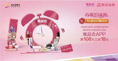 活动内容:即日起至2018年12月31日,每周五10:00至周六24:00,光大信用卡客户在唯品会APP通过光大信用卡快捷支付单笔消费满108元及以上,享立减18元优惠。按照客户消费时间排序,每周活动取前6000人。同一客户每周仅限参与一次,同一客户指同一光大信用卡卡号或者同一唯品会账号。
