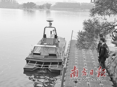 南方日报讯 (记者/何建文 黄少宏)20日,国内领先的全自主无人艇HUSTER-68在松山湖高新区松山木水库首航。该无人艇由广东华中科技大学工业技术研究院(简称“工研院”)研发,为该院成立十周年送上一份特别的礼物。