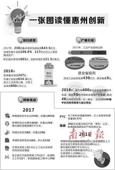 2017年惠州230宗重点项目完成投资643.5亿元,2018年安排重点项目247宗,年度计划投资634.3亿元……