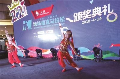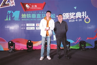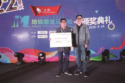 上周六上午10点整,随着一段活力四射的青少年群体街舞登场,2018“金鹰杯”首届南京地铁垂直马拉松颁奖仪式正式拉开帷幕。作为本次赛事组委会负责人之一,南京晨报爱南京APP运营总监张忠简短向在场嘉宾分享了15天赛事的组织情况:从3月24日启动到4月7日结束,2018“金鹰杯”首届南京地铁垂直马拉松共吸引58765名选手积极参与,参赛选手累计完成6256660级台阶,总台阶数相当于攀登了4000次紫峰大厦。最终,15个单日冠军、总排名榜前十名以及2000余位完赛选手顺利诞生。