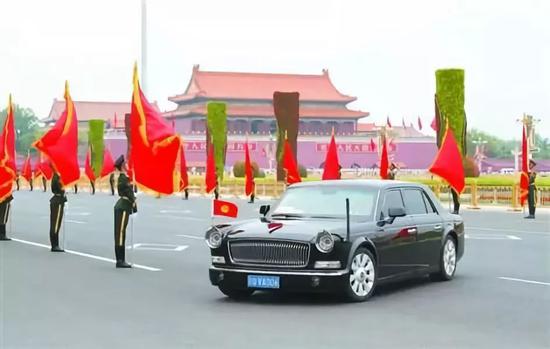 在外宾主车抵达沿途还增设了80名手持红旗的仪仗兵旗阵。