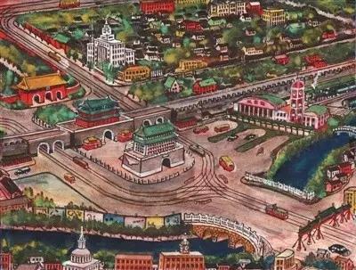 五十年代的《鸟瞰前门》,赵锡山老人手绘图