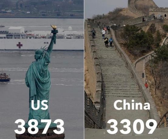 其实,北京时间4月1日上午4点55分,约翰斯·霍普金斯大学统计显示美国新冠肺炎累计确诊184183例,累计死亡3721例,当时就已经超过中国的3305例。“美国之音”让白宫不满的对比图是这张配文“美国死亡病例超过中国”的图: