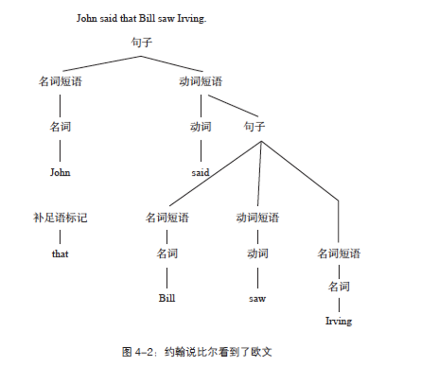 ,但是为了理解现代英语使用者如何构建他们的句子,树形结构确实很有必要。在这个例子中,树形图所展示的这句话里,“Bill saw Irving”