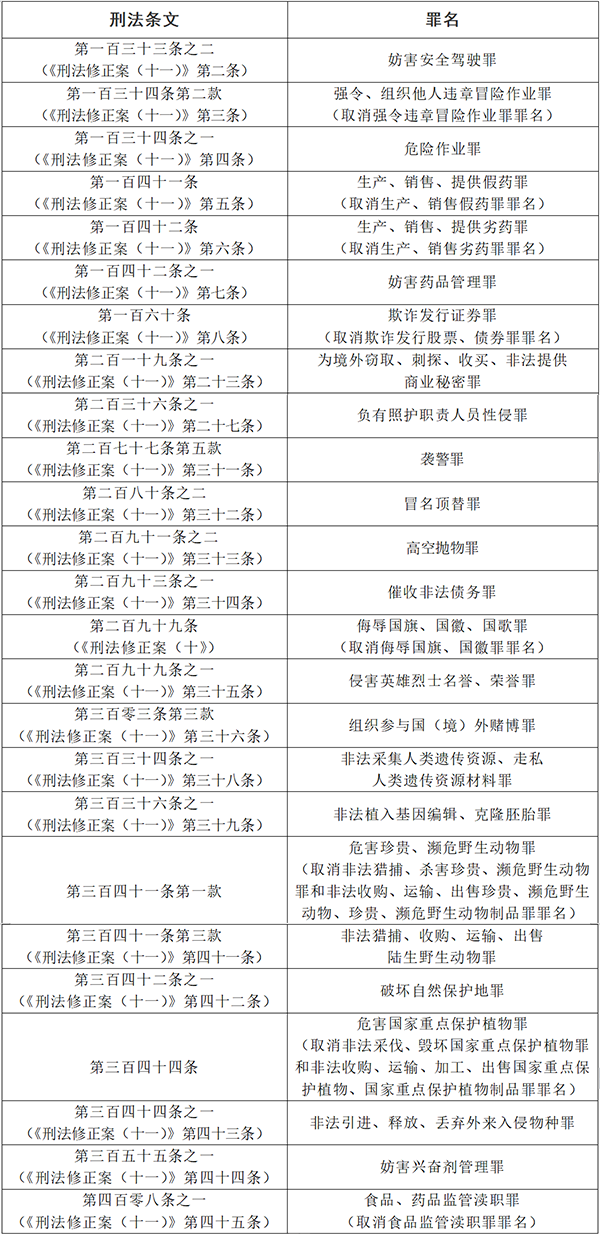 根据《中华人民共和国刑法修正案(十)》(以下简称《刑法修正案(十)》)、《中华人民共和国刑法修正案(十一)》(以下简称《刑法修正案(十一)》),结合司法实践反映的情况,现对《最高人民法院关于执行〈中华人民共和国刑法〉确定罪名的规定》《最高人民检察院关于适用刑法分则规定的犯罪的罪名的意见》作如下补充、修改: