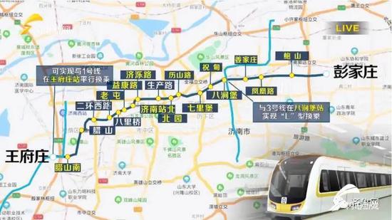 济南轨道交通2号线为东西向市域快线,线路全长36.4公里,设站19座,其中地下站18座、高架站1座;西端设王府庄车辆段,中部设姜家庄停车场,开通后预计全线单程运行时间约50分钟。