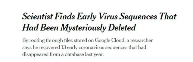 《纽约时报》也注意到了相关舆论,其专栏作家卡尔·齐默7月30日发表报道,援引了新华社记者对中方科研人员的专访,并采用了专访中两个核心观点:首先,删除数据是技术原因,与所谓掩盖新冠疫情起源无关。其次,涉及的数据采样时间较晚,对新冠溯源毫无价值。