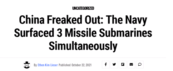 老司机查了一下,类似“3艘美国核潜艇同时上浮让中国极度不安”的报道,从今年10月开始已经陆续在多家美国媒体上出现,内容也大同小异,都在渲染当年3艘“俄亥俄”级巡航导弹核潜艇是“如何让中国惊恐不安”。
