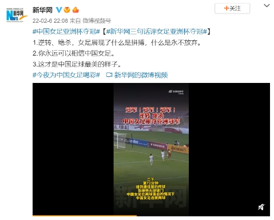 中国女足亚洲杯夺冠!中国足协:铿锵玫瑰,国人骄傲!