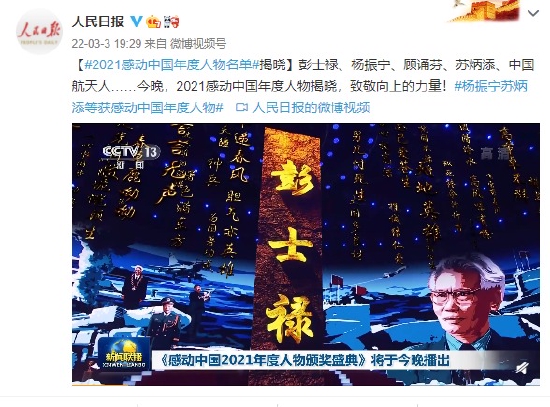 彭士禄、杨振宁、顾诵芬、苏炳添、中国航天人……今晚,2021感动中国年度人物揭晓,致敬向上的力量!