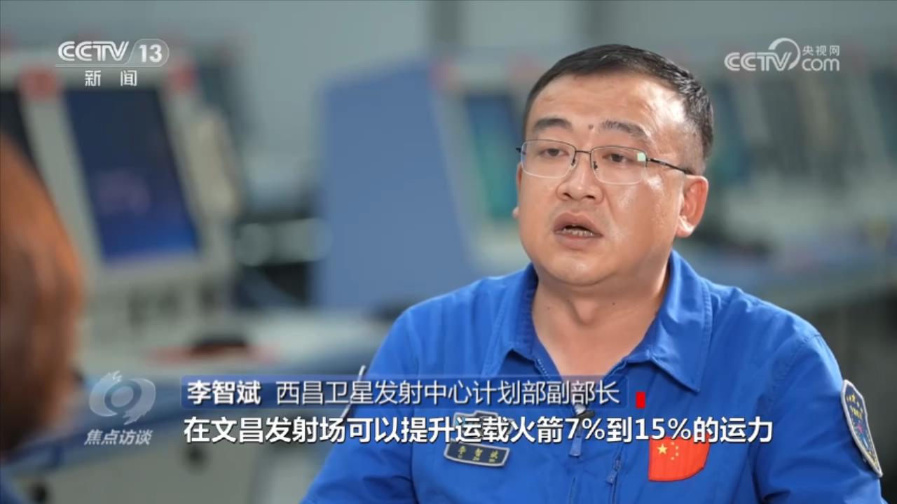西昌卫星发射中心计划部副部长李智斌:“发射同样的火箭,在文昌发射场可以提升运载火箭7%到15%的运力;第二个优势就是滨海发射落区安全性好;第三个优势是可以通过海运更加高效、便捷、安全地将这些部段运到文昌发射场进行组装。”