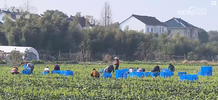 在位于上海市金山区枫泾镇最大的露地蔬菜种植基地里,240亩露地青菜长势喜人。十几名工人正在田间忙着采摘、打包、搬运,发往各大批发市场。除了熟菜抢收,其他蔬菜基地的菜农们也正在抓紧做好防寒保暖措施,上海市农业农村委也已启动寒潮应对准备,积极协助农户做好产销对接。