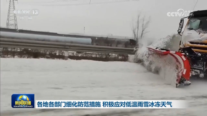 央视网消息(新闻联播):各地各部门细化防范措施,积极应对低温雨雪冰冻天气。