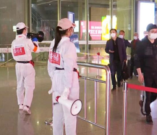 随着国内疫情防控形势全面向好,人们的出行安排也慢慢开始恢复正常。为了应对这一变化,南京南站也将具有体温检测功能的出站口数量从4个增加到了6个。这天下午出现了一点小状况,东二和西二出站口的测温点供电出现了问题,车站的志愿者们需要将这边的旅客引导至其他的4个出口。