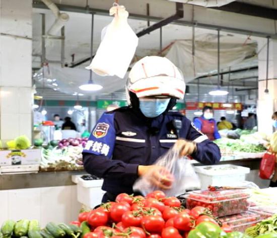 虽然人们的经济生活重启,但是社区居民平日里主要购物的小型商铺仍然没有完全恢复营业,去离家较远的大型超市和集贸市场买菜对于很多老年人来说是一个不小的负担。疫情期间,金衍虎和队员们一直承担着帮老人采购的工作。