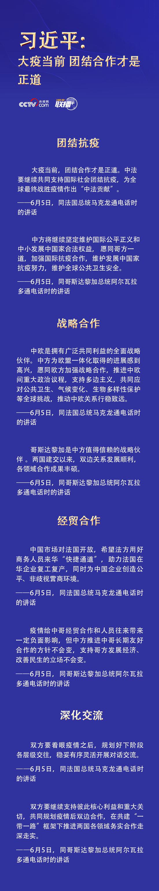当前,全球疫情扩散蔓延势头尚未得到有效遏制,加强国际抗疫合作,维护全球公共卫生安全尤为重要。习近平主席最新的两次“电话外交”有哪些看点?就共同迎接挑战释放了哪些积极信号? 央视网《联播+》特梳理,为您一起学习。