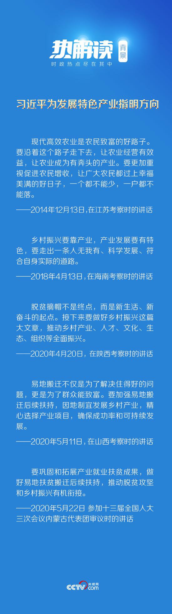 农业、农村、农民一直是习近平总书记心之所系。他特别指出,发展特色产业、特色经济是加快推进农业农村现代化的重要举措,要因地制宜抓好谋划和落实。