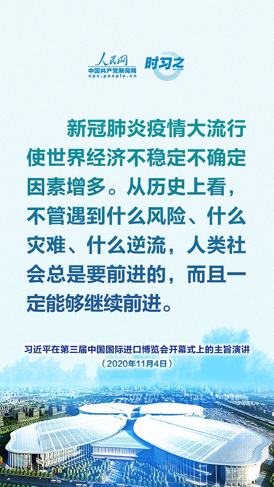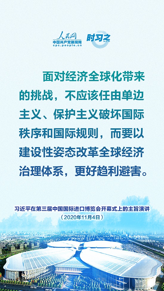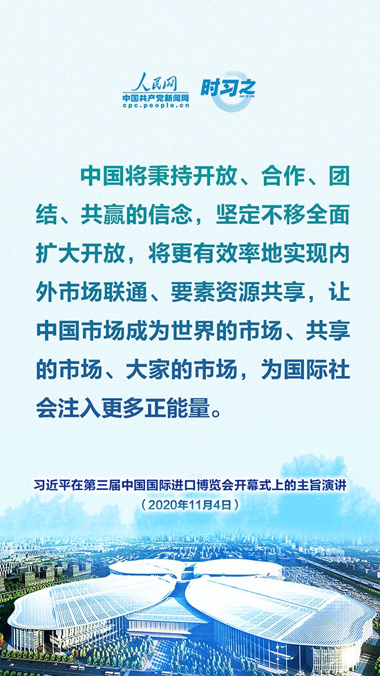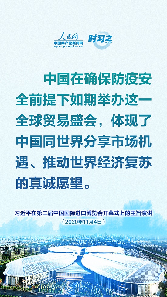 第三届中国国际进口博览会开幕式于11月4日晚在上海举行,国家主席习近平以视频方式发表主旨演讲。人民网·中国共产党新闻网“时习之”栏目制作了10张海报,带您一起回顾习近平这些掷地有声的话语。