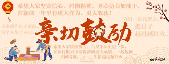 村民们热烈鼓掌,总书记给大家拜年,祝乡亲们生活越来越幸福。