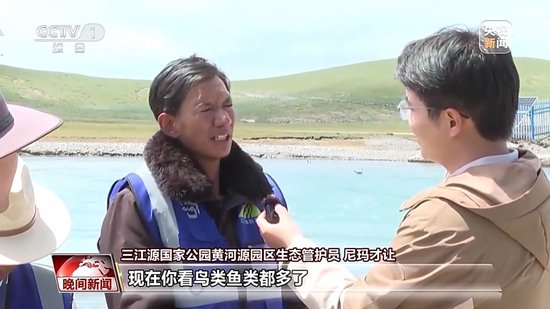 三江源国家公园黄河源园区生态管护员 尼玛才让:现在鸟类鱼类都多了,周边草场的环境也慢慢恢复起来了,水也涨起来了。