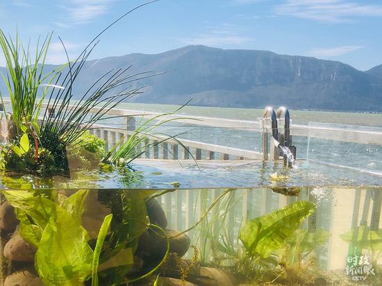 △考察现场摆放了模拟滇池生态的生态缸,一朵海菜花刚刚开放。随着生态环境改善,消失多年的海菜花等水生植物重现滇池。(总台央视记者彭汉明拍摄)五年前在云南考察时,习近平总书记还专程来到云南的另一个重要湖泊——洱海。他在洱海边和当地干部合影后说,“立此存照,过几年再来,希望水更干净清澈”。